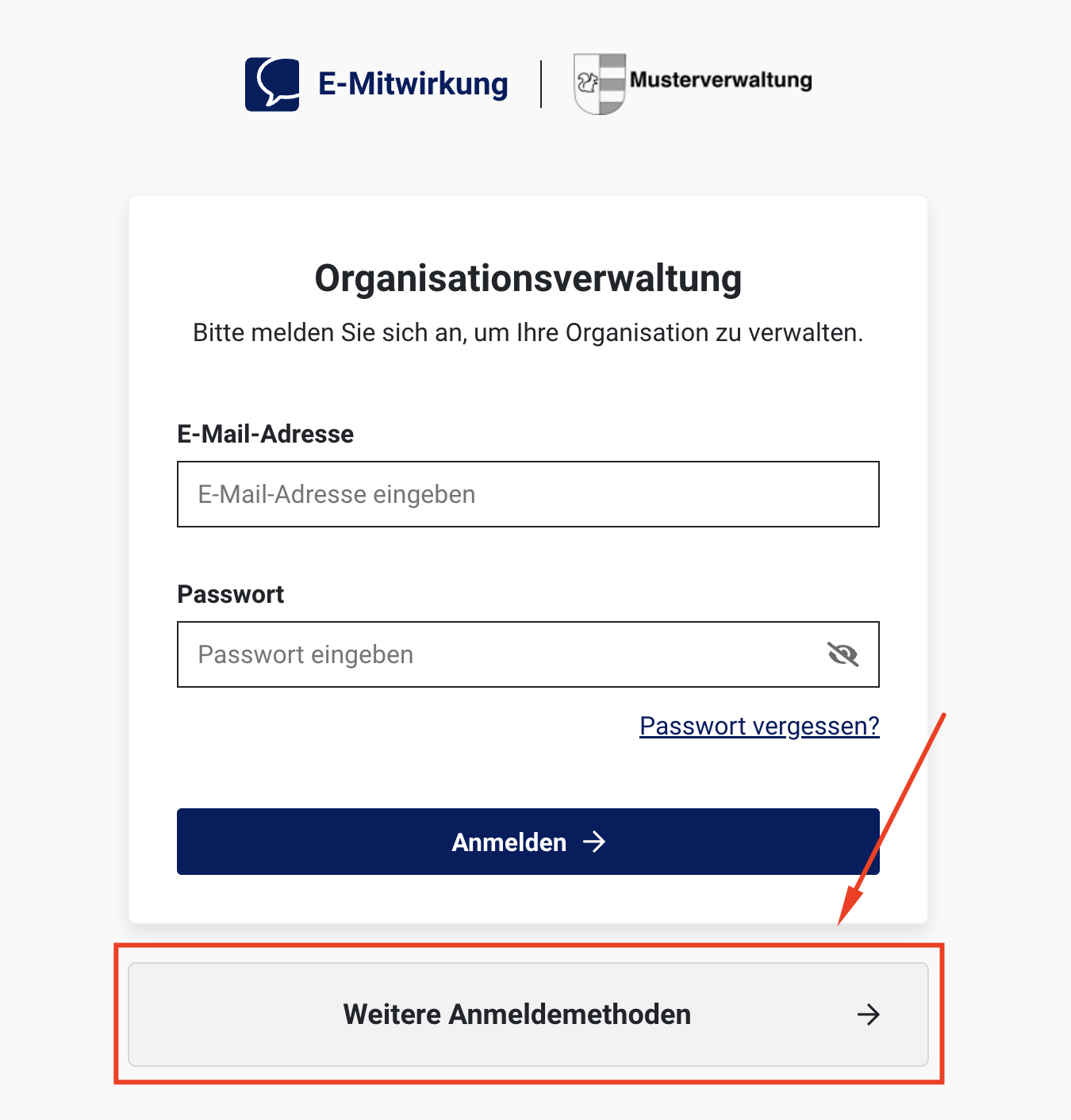 Falls Ihre Organisation die Anmeldemethode über den bestehenden Microsoft-Account (teilweise auch «AD-Account» oder «Entra ID» genannt) aktiviert und in der E-Mitwirkung eingerichtet hat, müssen Sie sich als Mitarbeitende Ihrer Organisation über das Microsoft-Login bei der E-Mitwirkung anmelden.