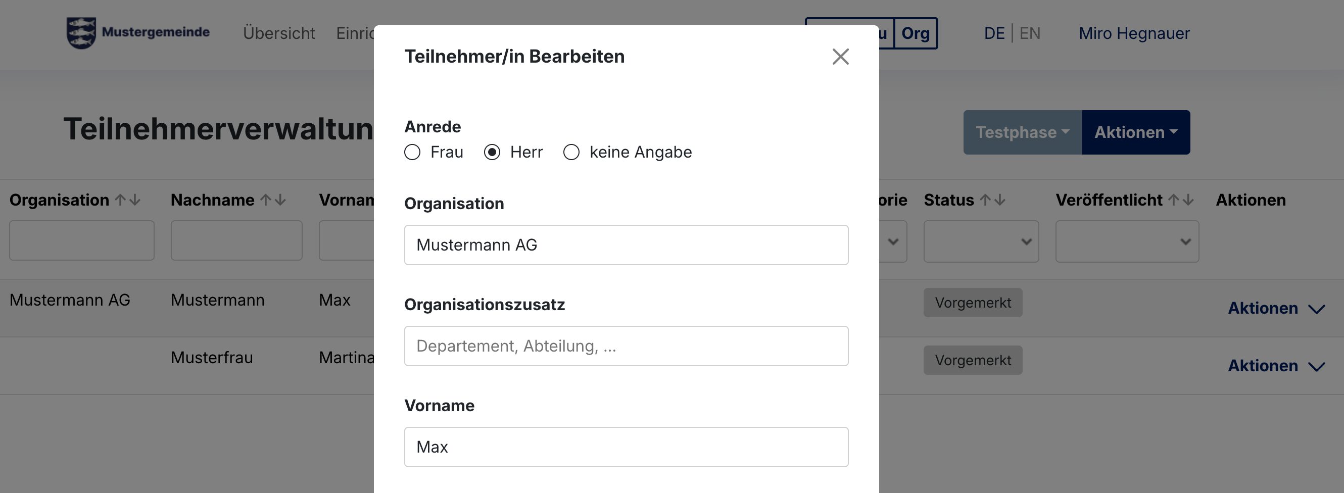Teilnehmerdaten einsehen und bearbeiten