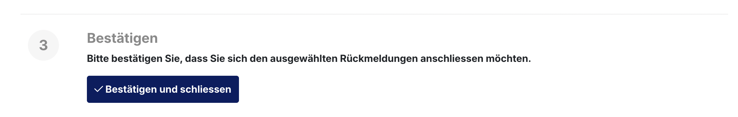 Nachdem Sie die Rückmeldungen ausgewählt haben, klicken Sie auf «Bestätigen und Schliessen».